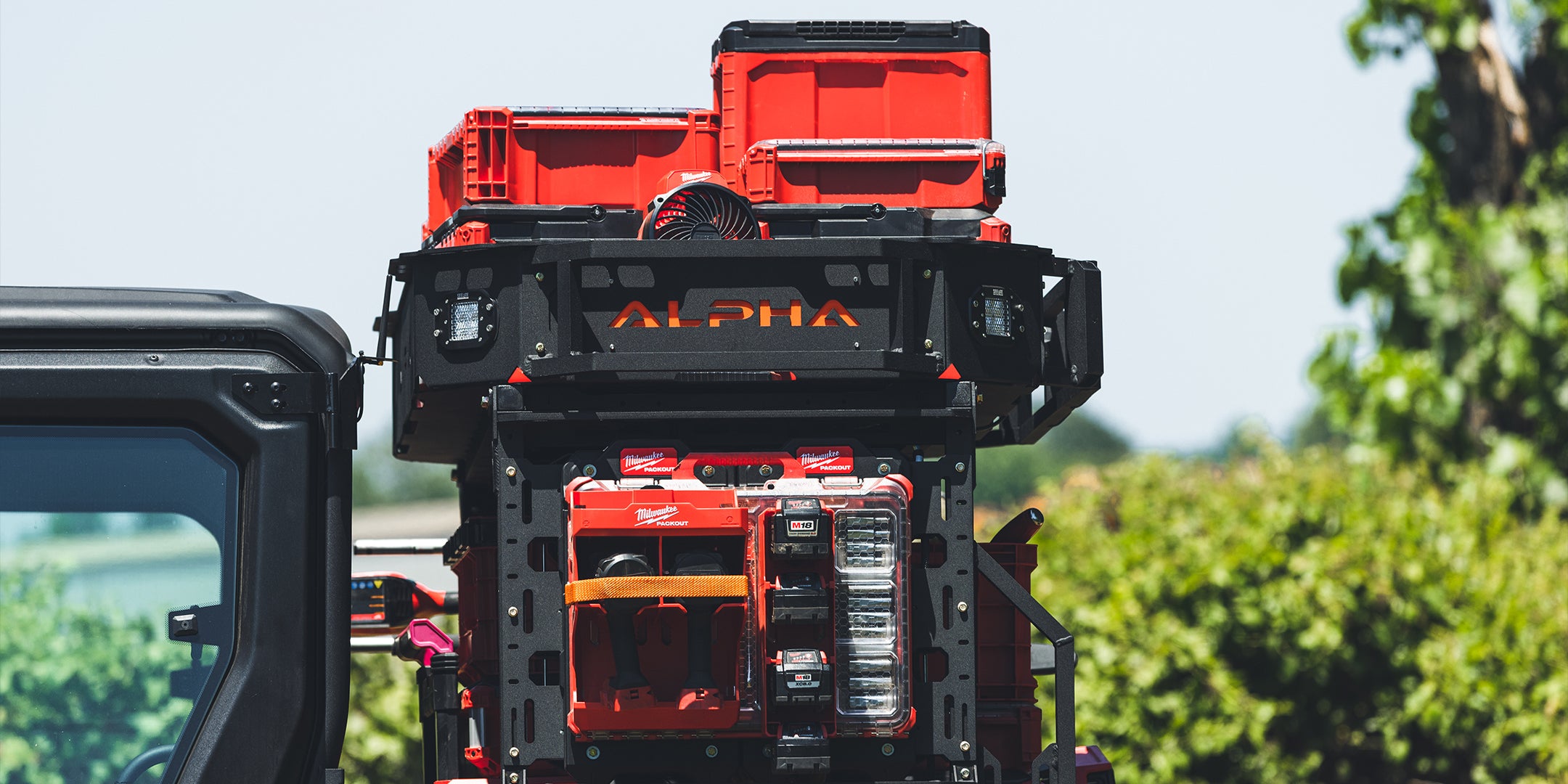 Modular mounting and organization accessory made specifically for Milwaukee Packout products. This Alpha Adapt accessory provides an effortless, secure, and waterproof gear transport mounting system while mounted directly to the Alpha Adapt UTV rack system. Compatible with the Milwaukee Compact Wall Plate (48-22-8486), Milwaukee Mounting Plate (48-22-8485), and Milwaukee Racking Shelf (48-22-8481). [E-track components sold separately]