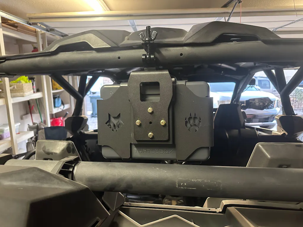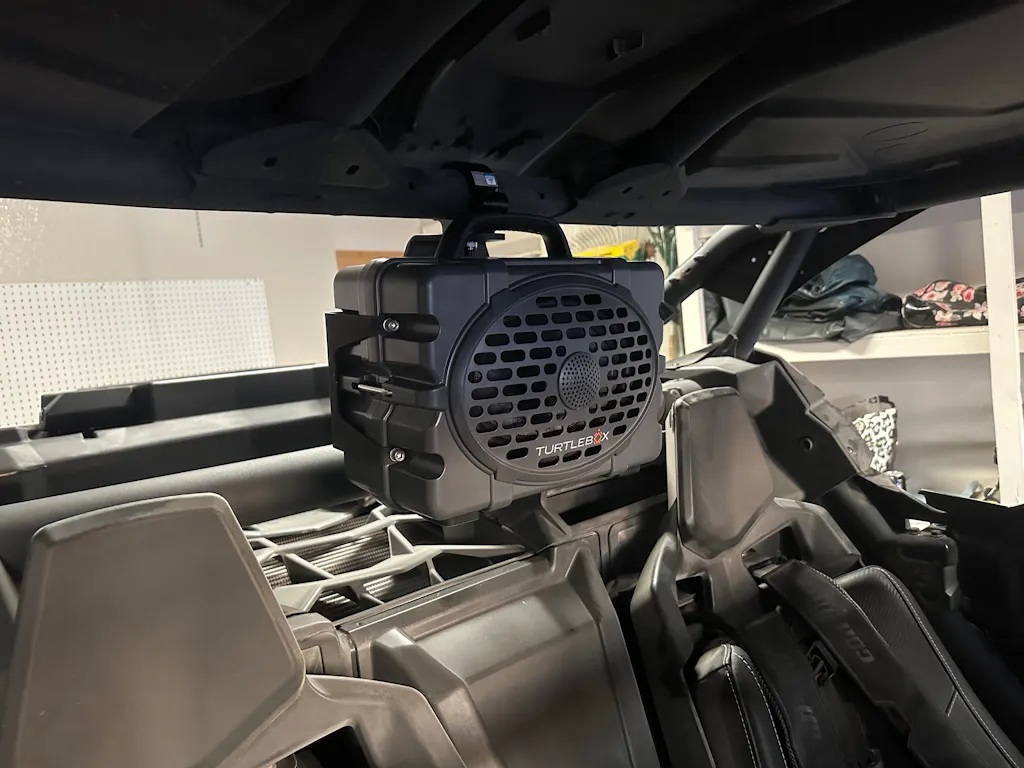 Introducing the Turtlebox Universal Tube Clamp Mount, the perfect accessory for securing your gear during side-by-side adventures.